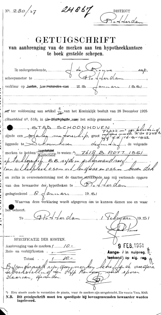 Op 8 januari 1951 ontving het schip zijn brandmerk. Vanaf dat moment stond het bekent als 76-B-ROTT-1951.
