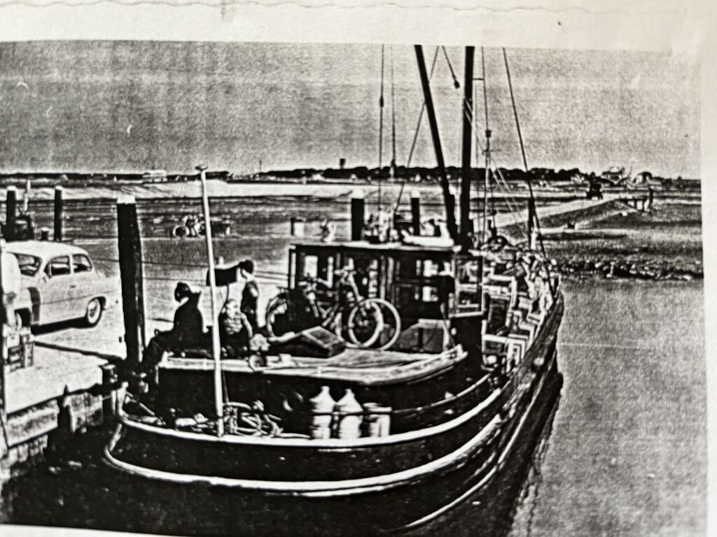 Het schip had toen nog geen opbouw zoals nu. Alleen een houten stuurhut en een roef (woongedeelte) achterop.