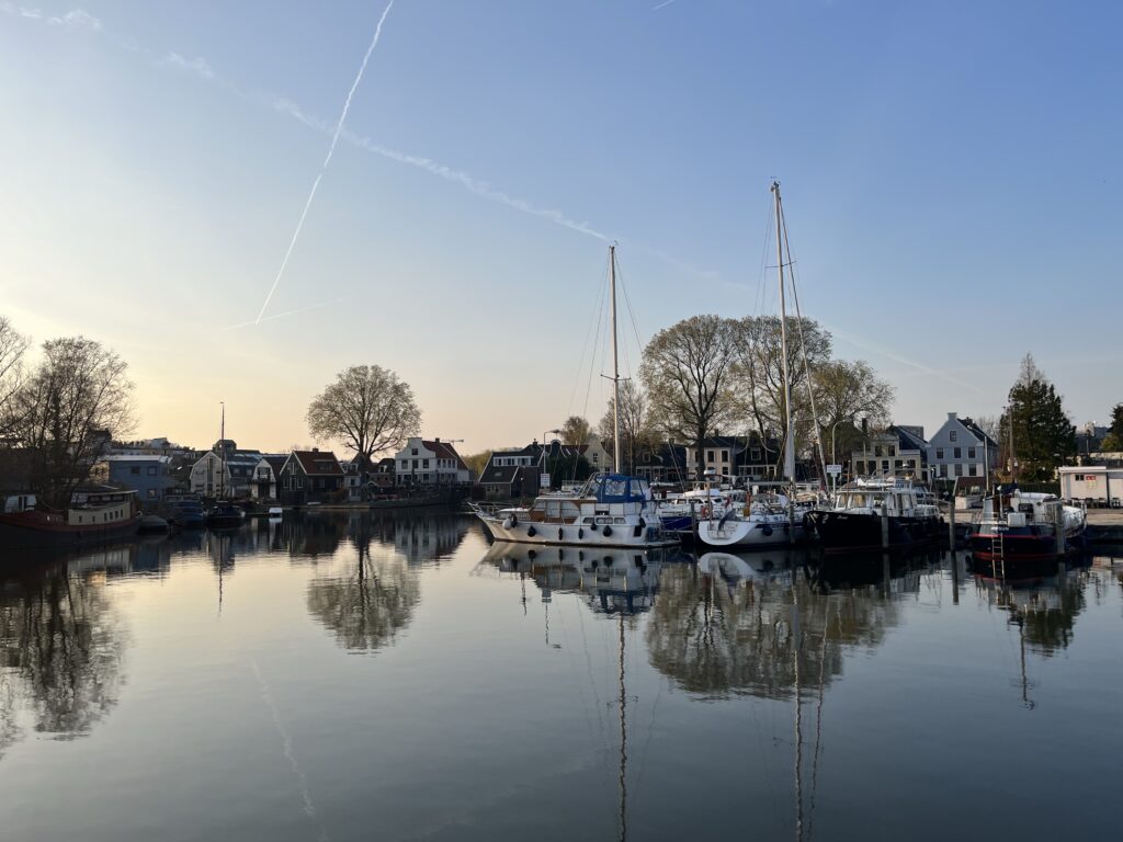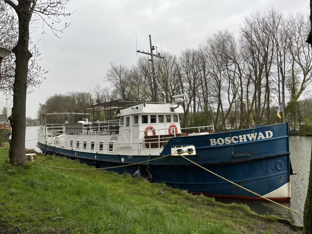 De Boschwad is best groot en de ruimte in de haven best klein… het was dus een spannende start. Maar na wat goede aanwijzingen en help van de aanwezigen (waaronder een heel gespannen buurman) konden we zonder schade vertrekken.