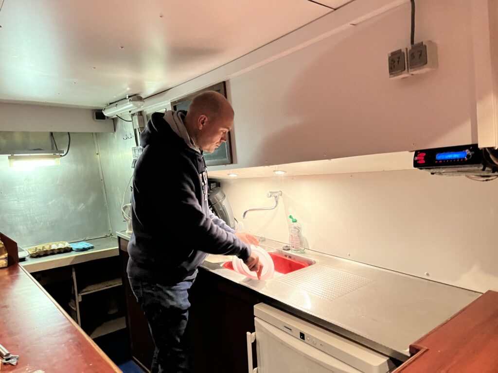 En dan nu… het schip woon-klaar maken. Om te beginnen met het plaatsen van een schoon- en vuilwater tank, en dan kan de vloer een aantal centimeter naar beneden zakken…. Wordt vervolgd!