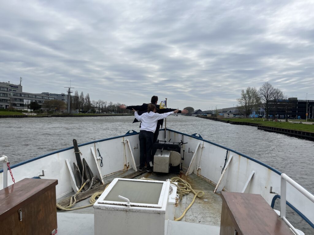 De volgende ochtend, na een heerlijke nacht in Amsterdam, kwamen Marjan, Gemma, Simon, Marylou, Veerle en Arne aan boord. Na een kopje koffie en bijpraten was het tijd om te vertrekken.