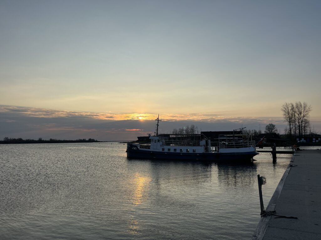 Rond een uur of 18 bereiken we Amsterdam en is het spannend of we onder de brug voor de Oranjesluis pasten en dat ging net. Wederom een sluis zonder wachttijd door en gaan we op zoek naar een haven waar we kunnen overnachten. We vinden een heel bijzonder plekje in Nieuwedam en zitten nog even gezellig op een terrasje met Merel en de kinderen waarna het tijd was voor avondeten. Na twee nachten weinig slaap zijn we allemaal moe waardoor het niet laat wordt.